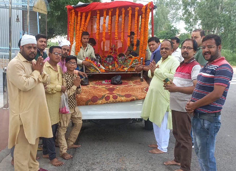 बदायूं : मां वैष्णो देवी की पिंडी रूप में छुइईया पुल से आगमन यात्रा मां वैष्णो देवी की गुफा के दिव्य दर्शन के लिए लालापुल से होती हुई मथुरिया गेट, गोपी चौक, नेहरू चौक, मुख्य बाजार से टिकटगंज, पथिक चौक होती हुई लाला हरप्रसाद मंदिर ग्राउंड बदायूं में ढोल बाजो के साथ माता रानी जोरदार जयकारों के गुंजायेमान होती हुई पिंडी रूप में वैष्णो माता, हनुमान बाबा, सालिगराम भगवान गुफा में विराजमान हुए ।इस मौके पर सेवक ध्रुव देव गुप्ता एवं विशाल गुप्ता ने सामूहिक रूप से बताया की हर बार की भाती इस बार भी मां विष्णों देवी जी के दिव्य दर्शन की गुफा पूर्ण तैयारी हो गई और मातारानी की गुफा में बाड़ गंगा , मुख्य पर्वत के साथ इस बार बाबा खाटू श्याम के दरबार के मनमोहक दर्शन भी होंगे ।