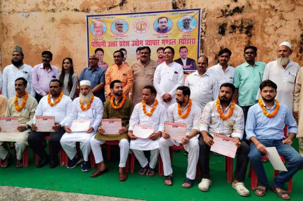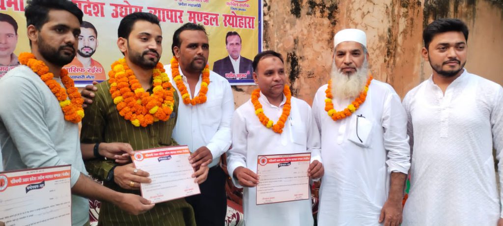 स्योहारा। पश्चिमी उत्तर प्रदेश व्यापार मंडल समारोह में आसिफ रईस को व्यापार मंडल अध्यक्ष चुना गया जिसमें व्यापार मंडल के जिलाध्यक्ष कपिल जी ने आसिफ रईस को मुबारकबाद देते हुए प्रमाण पत्र से सम्मानित किया और कार्यक्रम को संबोधित करते हुए कहा व्यापार मंडल एक दल का नहीं हर दल का व्यक्ति इसमें मौजूद है हमें इसको आगे बढ़ाना है और हो रहे व्यापार उत्पीड़न से सभी को बचाना है सभी को साथ मिलकर व्यापार के लिए व्यापार के हित में कार्य करना है अपने संगठन को मजबूत करना है कार्यक्रम का संचालन श्री मुकुल शर्मा जी प्रदेश महामंत्री और पुर्व विधायक नईम उल हसन ने किया और पश्चिमी उत्तर प्रदेश के सभी साथियों को सम्मानित किया गया इसमें मौजूद पश्चिम उत्तर प्रदेश महिला मोर्चा अध्यक्ष अलीशा सिद्दीकी, गुलाम नबी आजाद ,तस्लीम अहमद इदरीसी ,नसीम अहमद मीडिया प्रभारी ,फैजान खान नगर मंत्री, शावेज़ अली महामंत्री,सुभान अली, फैसल अनीश, अदनान, नौशाद प्रिंस, जहीर अहमद, रईस अहमद, भूरे भाई, आदि गणमान्य लोग मौजूद रहे!