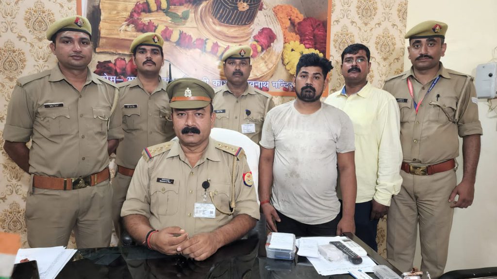 श्रीमान पुलिस आयुक्त श्री ए. सतीश गणेश महोदय कमिश्नरेट वाराणसी द्वारा चलाए जा रहे अपराध एवं अपराधियों के विरुद्ध अभियान के तहत पुलिस उपायुक्त ज़ोन काशी श्री राम सेवक गौतम महोदय के आदेश के क्रम में श्रीमान अपर पुलिस उपायुक्त श्री राजेश पाण्डेय ज़ोन काशी महोदय व श्रीमान सहायक पुलिस आयुक्त दशाश्वमेध श्री अवधेश कुमार पाण्डेय महोदय के कुशल नेतृत्व में प्रभारी निरीक्षक चौक शिवाकांत मिश्र की टीम द्वारा आज दिनांक 13/10/2022 को थाना लक्सा क्षेत्र से मोबाइल चोरी कर खाते से पैसे उड़ाने वाला अभियुक्त मणिकर्णिका घाट के पास से सुबह 10:15 बजे गिरफ्तार किया गया अभियुक्त के कब्जे से चोरी का मोबाइल और 50000 रुपए बरामद ।