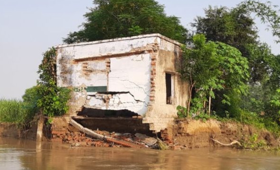Hardoi…..सवायजपुर। तहसील क्षेत्र के राम गंगा नदी का जलस्तर घटने लगा है। इसके बावजूद नदी किनारे स्थित गोरिया गांव के लोगों की परेशानियां कम नहीं हुई हैं। गांव में स्कूल भवन का आखिरी कमरा भी कटान की चपेट में बह गया है।किसानों के पशुओं के लिए चारा पानी की समस्या बनी हुई है। सैकड़ों बीघा कृषि भूमि जलमग्न हो जाने से फसलें नष्ट हो चुकी है। वहीं तीन किसानों की 11 बीघा कृषि भूमि नदी में समा गई है। नदी की तरफ मायूस निगाहों से देखते इन किसानों को अभी प्रशासन से मुआवजा नहीं मिल सका है।गोरिया शिवपुरी निवासी किसान बालक राम ने बताया तीन बीघा भूमि जिसमें उन्होंने तिल बोया था नदी में कटकर समा गई। बाढ़ के पानी से तिल की फसल चौपट हो गई। गांव निवासी प्रेमा देवी ने बताया पांच बीघा खेती नदी में समा गई। ब्रजपाल ने बताया उसकी तीन बीघा मूंगफली की फसल बोई थी नदी में समा गई।