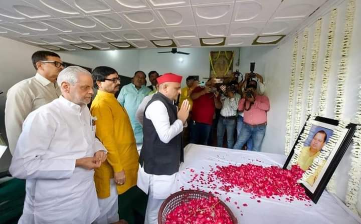 बाराबंकी। समाजवादी पार्टी के राष्ट्रीय अध्यक्ष अखिलेश यादव आज बाराबंकी पहुंचे। वह यहां पूर्व कैबिनेट मंत्री अरविंद सिंह गोप के घर उनके बड़े भाई अशोक कुमार सिंह को श्रद्धांजलि देने पहुंचे थे। दरअसल गोप के बड़े भाई अशोक सिंह का हार्ट अटैक के चलते कल निधन हो गया था। इस मौके पर अखिलेश यादव के साथ सपा नेता राजेंद्र चौधरी भी मौजूद थे। इस मौके पर अखिलेश यादव ने कहा कि दुख की इस घड़ी में पूरी समाजवादी पार्टी गोप के परिवार के साथ है।