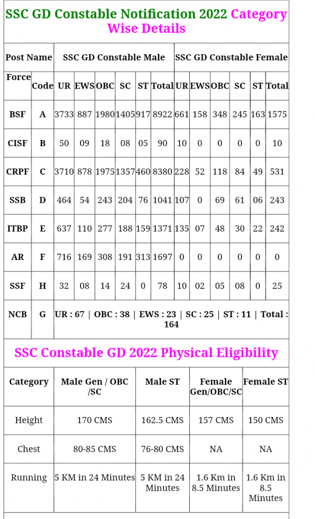 One thought on “SSC: युवाओं के लिए खुशखबरी!GD कॉन्स्टेबल के 24369 पदों पर भर्ती प्रक्रिया के लिए आवेदन शुरू,जाने पोस्ट वाइज रिक्तियों एवं शारिरीक योग्यता का विवरण..”