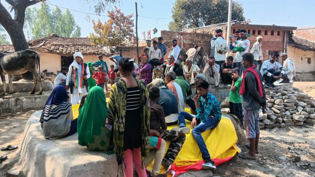 चित्रकूट जनपद के राजापुर तहसील क्षेत्र अंतर्गत रामपुरिया गांव में किसान व मजदूरों के बीच में पंचायत लगाकर कांग्रेस की नीतियों के विषय में चर्चा करते हुए कांग्रेस पार्टी में जोड़ने की अपील निर्मला भारती द्वारा किया गया।