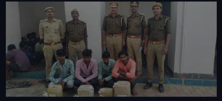 प्राप्त जानकारी के अनुसार थाना रामनगर अंतर्गत अवैध देसी कच्ची शराब बनाने के लिए विख्यात ग्राम पंचायत लैन व मुरारी पुरवा मजरे कजियापुर में वरिष्ठ उपनिरीक्षक बी के शर्मा एवं आबकारी निरीक्षक ओमप्रकाश मिश्रा तथा उप निरीक्षक श्री राम शुक्ला, सुमित कुमार वर्मा तथा पुलिस चौकी प्रभारी महादेवा अनिल कुमार पांडेय दल बल के साथ गांव को चारों ओर से घेरकर मुखबिर द्वारा बताए गए लोगों के यहां छापेमारी की। छापेमारी के दौरान मुन्ना पुत्र त्रिलोकी निषाद, राहुल पुत्र रामनरेश निषाद, संदीप पुत्र रामनरेश निषाद व अवधेश पुत्र रामनरेश के यहां से करीब 40 लीटर अवैध देसी कच्ची शराब बरामद किया तथा शराब को अधिक नशीला बनाने के लिए यूरिया खाद आदि पदार्थ भी बरामद किए और बनाने के उपकरण भी बरामद किए गए तथा काफी मात्रा में लहन नष्ट किया गया। पुलिस ने गिरफ्तार चारों लोगों को आबकारी अधिनियम के अंतर्गत अभियोग पंजीकृत कर जेल भेजा है।