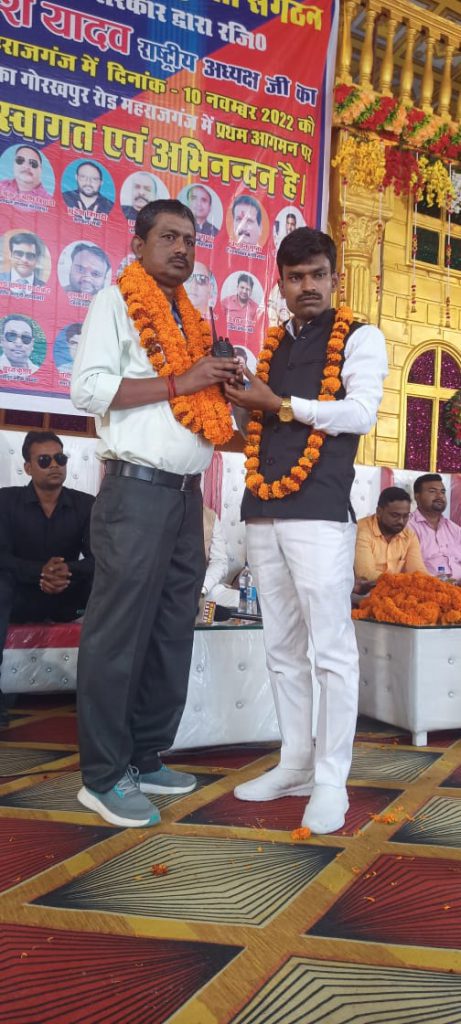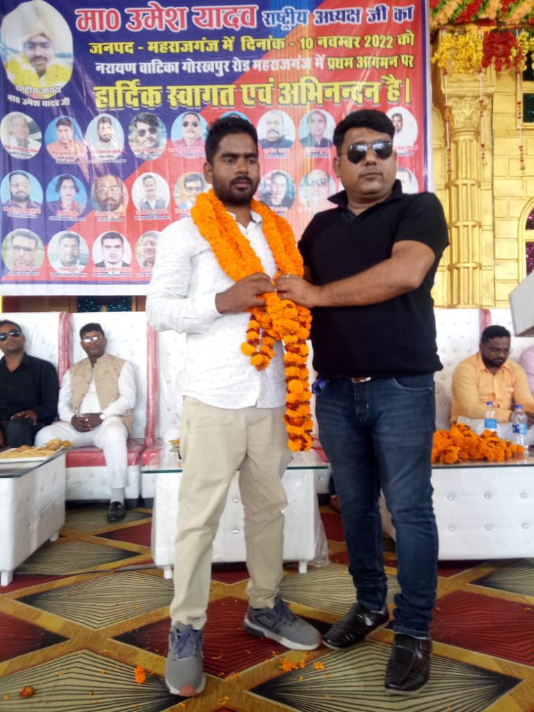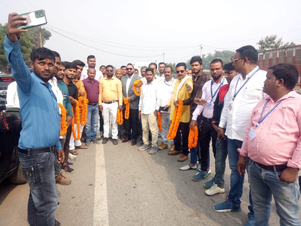 महराजगंज/यूपी:बलिदानों की धरती और प्रोफेसर शिब्बन लाल सक्सेना की कर्मभूमि महराजगंज में अंतरराष्ट्रीय मानवाधिकार सुरक्षा संगठन के राष्ट्रीय अध्यक्ष उमेश यादव,राष्ट्रीय उपाध्यक्ष घनश्याम सिंह चौहान और प्रदेश अध्यक्ष सुखेंद्र सिंह का मंडल इकाई गोरखपुर और महराजगंज जिला इकाई के सैकड़ों कार्यकर्ताओं ने प्रदेश सचिव तबारक अली, मंडल अध्यक्ष पंकज मणि त्रिपाठी,क्षेत्रीय समन्यवक मृत्युंजय मिश्रा, जिलाध्यक्ष महराजगंज जहरुद्दीन सिद्दीकी और जिला उपाध्यक्ष अश्वनी ओझा के नेतृत्व में महराजगंज के जनपद में प्रथम आगमन पर भव्य और जोरदार स्वागत शिकारपुर चौराहे पर किया गया ।