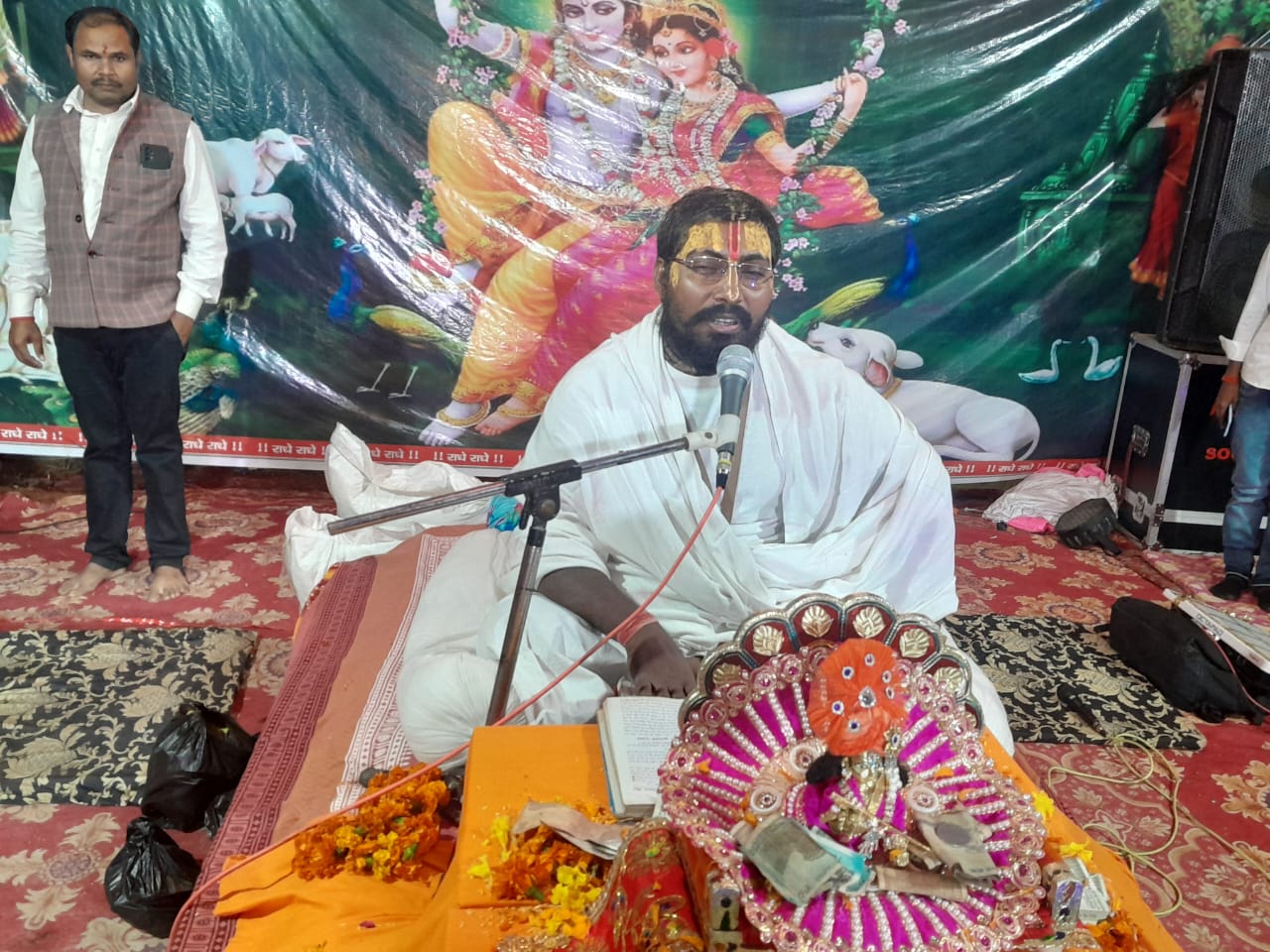 कथा के दौरान ब्लाक प्रमुख चंद्रशेखर वर्मा, प्रधान संघ के अध्यक्ष प्रदीप सिंह, मुकेश सिंह, मधुकर तिवारी एवं मोहित शास्त्री ने कथावाचक का माल्यार्पण कर स्वागत किया। कथा वाचक ने भी इन सभी अतिथियों को अंगवस्त्र प्रदान कर आशीर्वाद दिया। इस कथा के आयोजन में पूर्व प्रधान मनोज कुमार मिश्र एवं धीर बाबू शुक्ला का विशेष योगदान है, आसपास के ग्रामीण भी इस कथा में अपना भरपूर सहयोग कर रहे हैं।