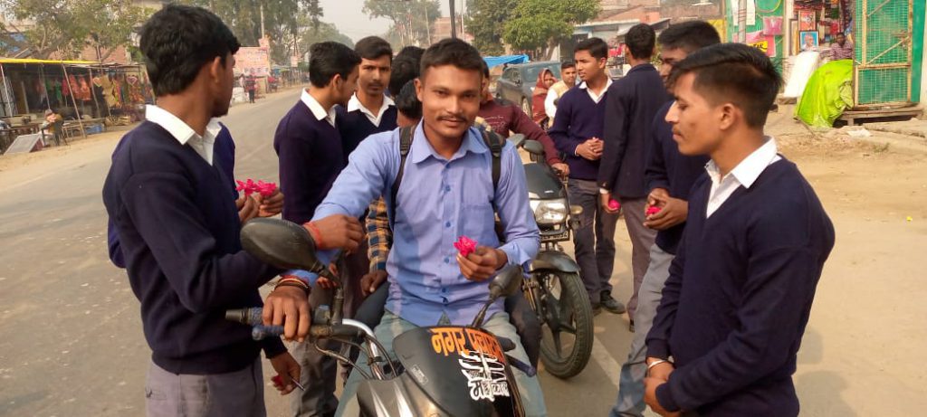 आज दिनांक 29 नवंबर को सरस्वती विद्या मंदिर इंटर कॉलेज रामसनेहीघाट बाराबंकी के छात्रों के द्वारा यातायात संबंधित नियम का पालन करने के लिए लोगों को जागरूक किया गया दुपहिया वाहन के चालक जो बगैर हेलमेट लगाए हुए थे उन्हें गुलाब का पुष्प देकर सम्मानित किया गया और छात्रों के द्वारा हेलमेट न लगाने से उत्पन्न होने वाली समस्याओं के बारे में बच्चों ने बताया और सभी को हेलमेट लगाने के लिए प्रेरित किया गया तथा चार पहिया वाहन के चालक जो बगैर सीट बेल्ट लगाए गाड़ी चलाते हुए नजर आते थे उन्हें रोक कर और गुलाब का पुष्प भेंट कर उन्हें सीट बेल्ट लगाकर चलने के लिए प्रेरित किया गया ताकि सड़क पर कम से कम हादसे हो सके ।
