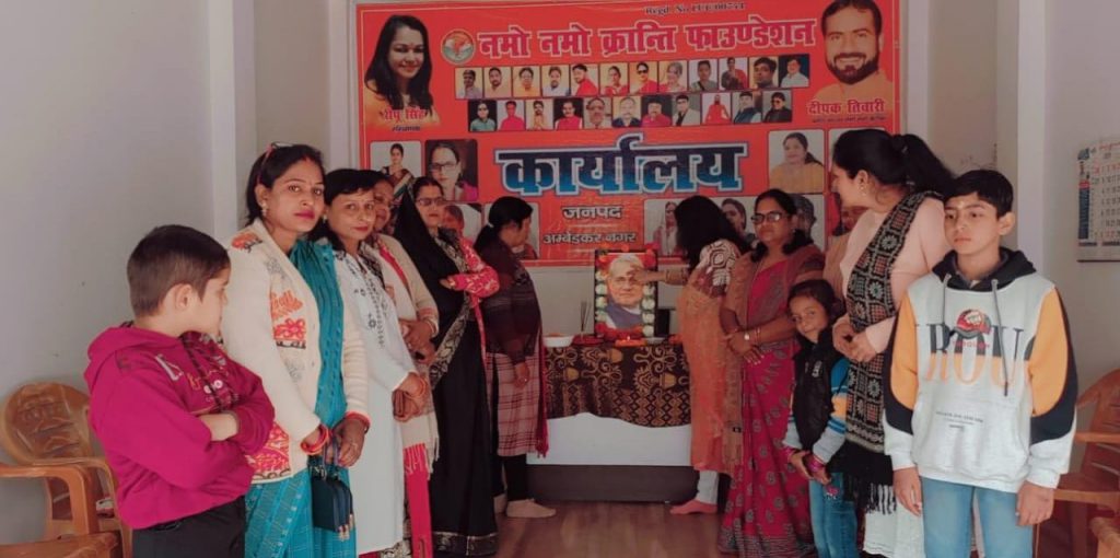 अंबेडकर नगर।। आज पूर्व प्रधानमंत्री की जयंती को जिला अंबेडकरनगर शिव बाबा में नमो नमो क्रांति फाउंडेशन के कार्यालय पर बड़ी धूमधाम से मनाया गया। साथ ही उनके काम को याद करते हुए उनके चित्र पर फूल अर्पण किया गया।