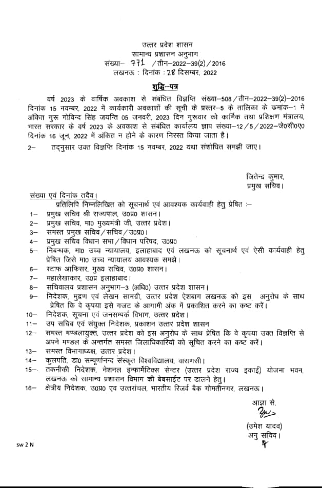 Share this: Click to share on Facebook (Opens in new window) Facebook Click to share on X (Opens in new window) X Click to share on LinkedIn (Opens in new window) LinkedIn Click to share on X (Opens in new window) X Click to share on WhatsApp (Opens in new window) WhatsApp Click to print (Opens in new window) Print Post navigation अज्ञात बदमाशों द्वारा अधेड़ की गला घोंटकर की गई हत्या,मामलें की जांच में जुटी पुलिस।परिजनों ने लगाया पुलिस पर लापरवाही का आरोप.. यूपी:माध्यमिक विद्यालयों की अवकाश तालिका 2023 जारी,229 दिन की पढ़ाई के साथ 121 दिन की छुट्टी,15 दिनों में होगी बोर्ड परीक्षाएं। यहाँ देखें अवकाश तालिका..