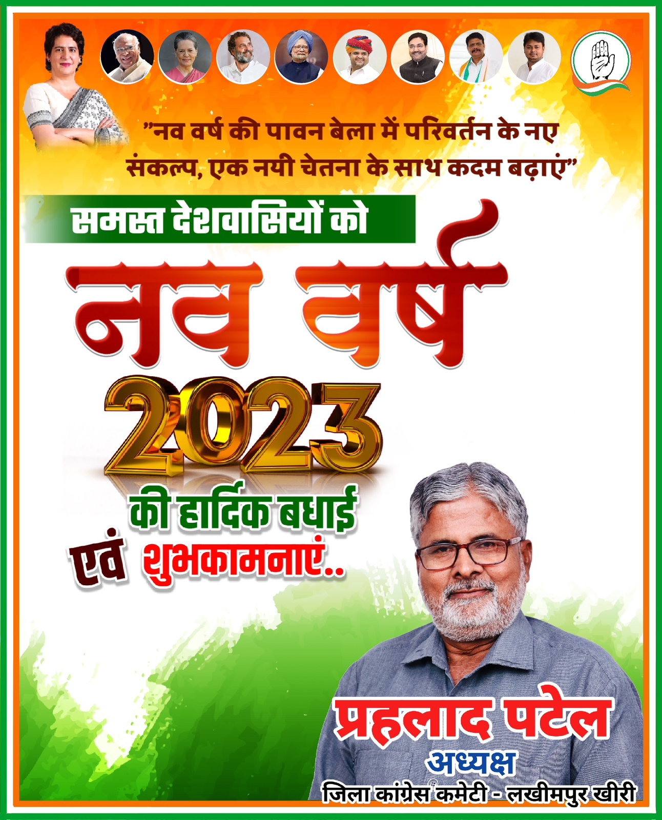 लखीमपुर खीरी कांग्रेस कमेटी के जिला अध्यक्ष प्रहलाद पटेल जनपद वासियों व देश प्रदेश वासियों को नव वर्ष 2023 की शुभकामनाएं दी हैं