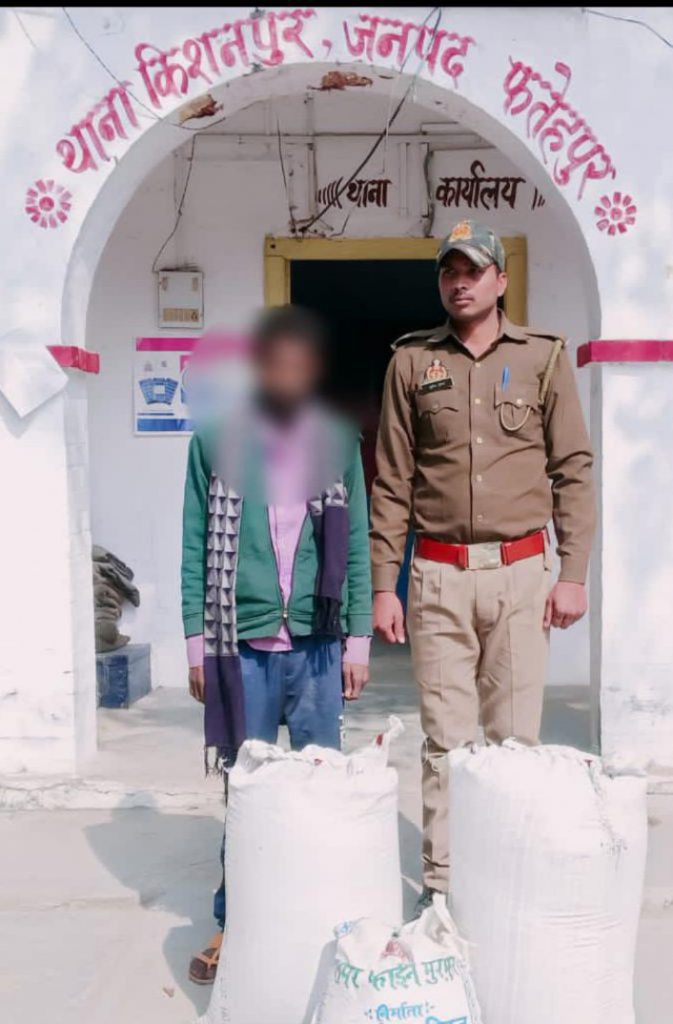 *फतेहपुर जनपद के अंतर्गत किशनपुर थाना क्षेत्र में पुलिस टीम ने चोरी गए माल सहित युवक को किया गिरफ्तार। पुलिस से प्राप्त जानकारी के अनुसार किशनपुर थाना प्रभारी निरीक्षक के नेतृत्व में मुखबिर की सूचना पर बीते दिनों घर से हुई चोरी की वारदात में भुक्तभोगी द्वारा दी गई तहरीर पर पुलिस ने मुकदमा अपराध संख्या 9/23 धारा 379, 411 भादवि मैं अभियोग पंजीकृत किया था। वहीं मुखबिर की सूचना पर उपनिरीक्षक शशिकांत सरोज चौकी प्रभारी विजयीपुर हमराही पुलिस बल के साथ ग्राम रानीपुर बहेरा थाना किशनपुर जनपद फतेहपुर से सुग्रीव उर्फ सोनू पुत्र राम सजीवन निवासी पहाड़पुर थाना किशनपुर को गिरफ्तार करते हुए उसकी निशानदेही पर उसके कब्जे से चोरी गए में 82 किलो सरसों (लाही) व 16 किलो बाजरा बरामद करते हुए स्थानीय थाना पहुंच विधिक कार्यवाही बाद न्यायालय के समक्ष पेश करने हेतु रवाना किया।