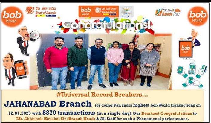 उत्तर प्रदेश फतेहपुर जहानाबाद टीम बैंक ऑफ बड़ौदा नंबर वन बॉबवर्ड ट्रांजेक्शन