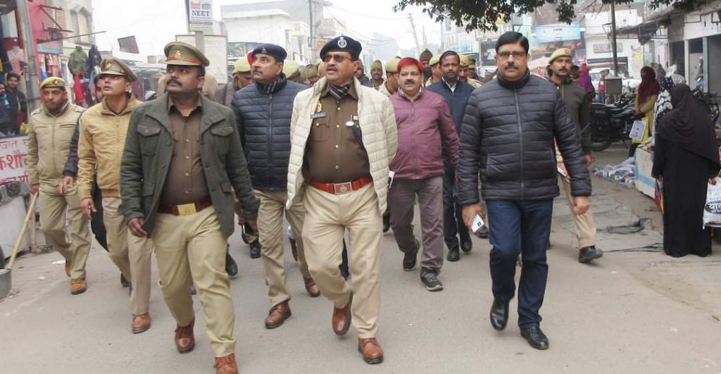 सहसवान/बदायूं : शनिवार को जिलाधिकारी मनोज कुमार ने वरिष्ठ पुलिस अधीक्षक डॉ0 ओपी सिंह के साथ अपराध नियंत्रण व कानून एवं शांति व्यवस्था के दृष्टिगत सहसवान में भ्रमण कर सुरक्षा व्यवस्था का जायजा लिया। दोनो वरिष्ठ अधिकारियों ने कोतवाली सहसवान से अकबराबाद चौराहे तक पैदल रूर्ट मार्च किया। भीड़भाड़ वाले स्थानों में भ्रमण करते हुए वहाँ पर मौजूद स्थानीय लोगों, दुकानदारों, आदि से मुलाकात कर वार्ता की गयी तथा आमजनमानस से संवाद स्थापित कर आपस में प्रेम, सौहार्द बनाए रखने हेतु व अफवाहों पर ध्यान न देने की अपील की गयी।