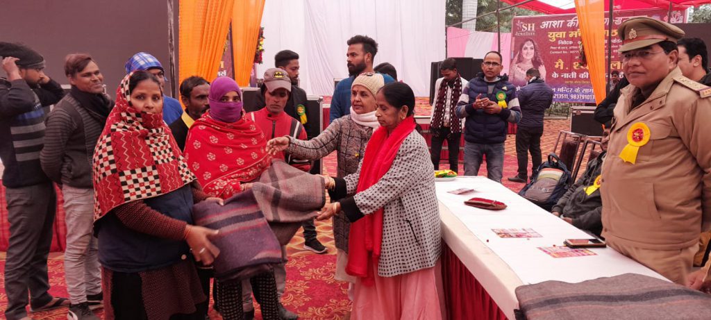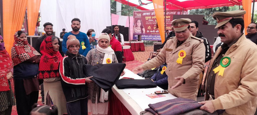 बदायूं/ उत्तर प्रदेश : शनिवार को युवा मंच संगठन एवं श्याम लाल के नाती के तत्वधान में आयोजित मां को समर्पित आशा की किरण उत्सव 2023 का आगाज राजकुमार तिवारी कोतवाली प्रभारी निरीक्षक बदायूं एवं आशा वर्मा,आशा गुप्ता के द्वारा फीता काट कर गुबारों को उड़ाकर एवं मां शारदे के समक्ष दीप प्रज्ज्वलित कर किया गया तदोपरांत सैकड़ो लोगो कंबल वितरण किए गये साथ ही हजारों लोगो ने खिचड़ी भोज किया ।