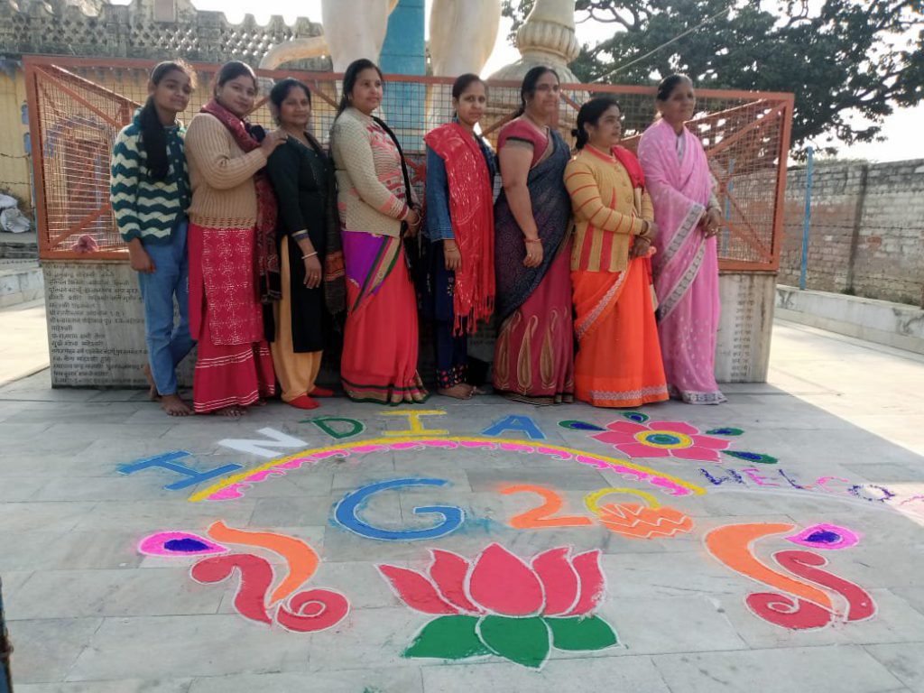 बिल्सी/बदायूं : नगर के सिरसौल रोड स्थित प्रसिद्ध देववाणी मंदिर पर सोमवार को भाजपा महिला मोर्चा की नगर अध्यक्ष पिंकी कावरा के नेतृत्व में G20 वेलकम इंडिया का कार्यक्रम आयोजित किया गया । मंदिर परिसर में भाजपा महिला मोर्चा कार्यकर्ताओं ने फर्श पर रंगोली बनाई । उन्होंने कहा विश्व की प्रमुख अर्थ व्यवस्थाओं के समूह G20 की अध्यक्षता वर्तमान में भारत के पास है । पिछले वर्ष दिसंबर 2022 में औपचारिक रूप से भारत ने इसकी अध्यक्षता ग्रहण की थी । जो नवम्बर 2023 तक रहने वाली है साथ ही यह भी कहा देश के प्रत्येक नागरिक के लिए गौरव की बात है कि प्रधानमंत्री नरेंद्र मोदी के करिश्माई नेतृत्व में भारत G20 की अध्यक्षता कर रहा है और साथ ही हमारी मजबूत प्रगति के साथ विश्व में बढ़ते कद का प्रमाण है । इस मौके पर सरला गुप्ता, सोनी माहेश्वरी, कमलेश माहेश्वरी,कुसुम शर्मा, बैकुटी शर्मा, पूजा, मोनी शर्मा, अंजली, नंदिनी, मधु सौनकर, रमा गुप्ता आदि लोग उपस्थित रहे।