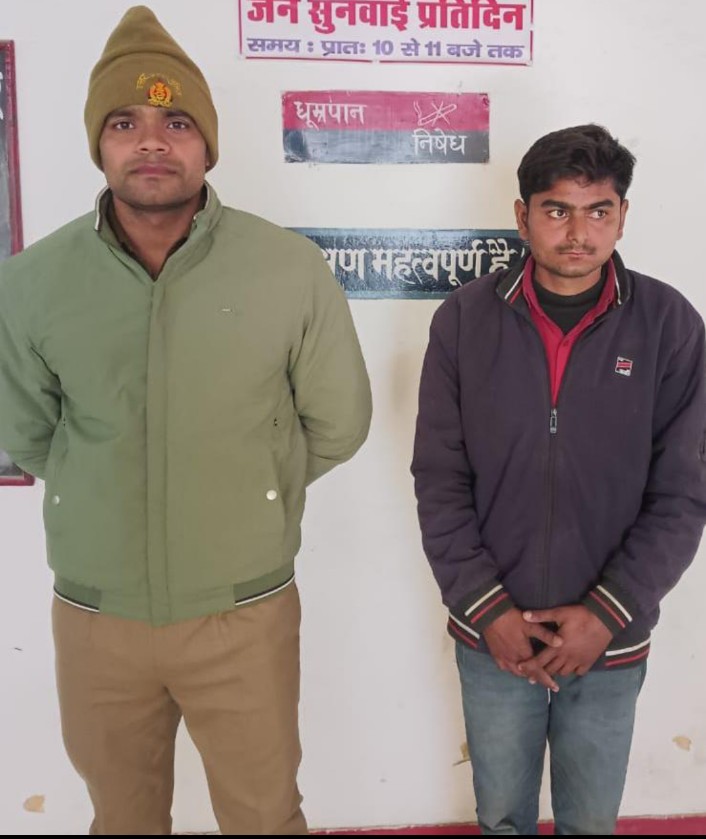 *फतेहपुर जनपद में आज दिनांक 17.01.2023 को थाना मलवां से उपनिरीक्षक शैलेन्द्र कुमार यादव ने पुलिस हमराही द्वारा अभियुक्त अंकित कुमार पुत्र स्व रामनरेश यादव निवासी मुजवाखेड़ा थाना मलवा फतेहपुर को गिरफ्तार कर माननीय ग्राम न्यायालय बिंदकी एसडीएम के समक्ष पेश करने हेतु रवाना किया ।
