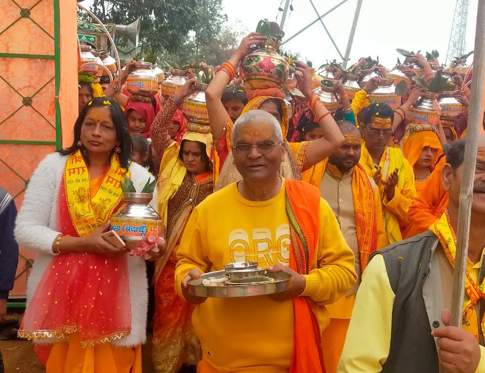 बिसौली/बदायूं : एमएफ हाईवे स्थित ग्राम हत्सा में मानव कल्याण हेतु पाँच कुण्डीय रुद्र यज्ञ से पूर्व कलश यात्रा निकाली गई। 101 पीतवस्त्रधारी महिलाओं द्वारा सिर पर कलश धारण कर कलशयात्रा ग्राम के मुख्य मार्गों से होकर यज्ञ स्थल पर सम्पन्न हुई। ग्रामीणों ने जगह जगह कलशयात्रा पर पुष्प वर्षा की। इस अवसर पर पुनीत शंखधार, जमुना प्रसाद मिश्रा, गिरीश मिश्रा, रामदेव मिश्रा, सत्यदेव मिश्रा, बबलू मिश्रा, रवि मिश्रा, अखिलेश मिश्रा, रजनेश शखधार, चंद्रपाल शर्मा, पप्पू पाठक, शिवम मिश्रा, विनायक, नवनीत पाठक, कृष्णा गुप्ता आदि मौजूद रहे।
