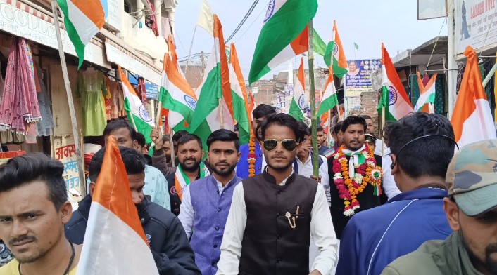 कस्बा जहानाबाद में आज 26 जनवरी के उपलक्ष्य में प्रत्याशी भीम आर्मी पार्टी नगरपंचायत कोडा जहानाबाद प्रदीप निषाद के द्वारा विशाल तिरंगा यात्रा निकाली गई। विशाल तिरंगा यात्रा रैली प्रज्ञान हॉस्पिटल से लालू गंज से होकर थाना मोड़ से पूरे जहानाबाद में तिरंगा यात्रा और झंडा फहराया गया 26 जनवरी को उपलक्ष में अपार संख्या में लोग एकत्रित होकर पूरे जहानाबाद में तिरंगा फहराया और मौके पर रवि निषाद फौजी, उमाकांत कुशवाहा सहित हजारों की मात्रा में लोगों की भीड़ तिरंगा यात्रा में शामिल हुई।।