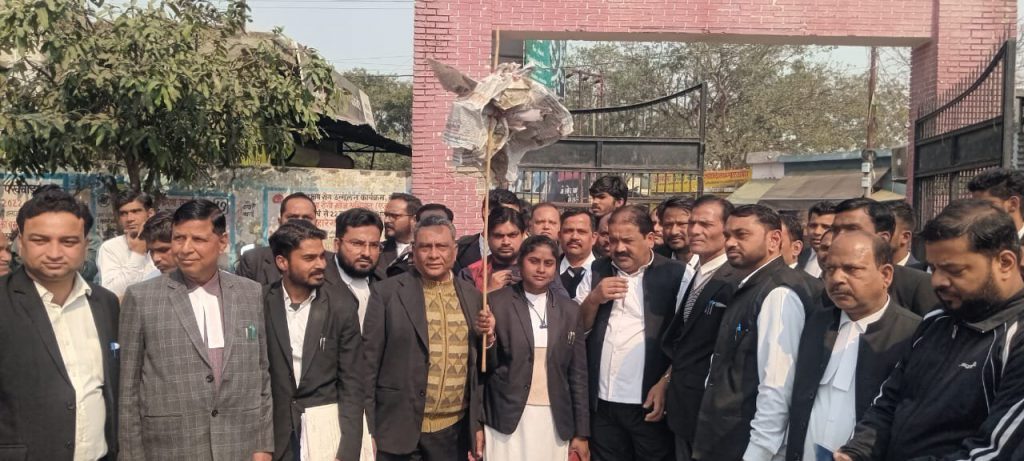 बरेली । बदायूं/उत्तर प्रदेश : अधिवक्ता प्रोटेक्शन एक्ट की मांग को लेकर एक बार फिर अधिवक्ता सड़क पर आ गए। उन्होंने कलेक्ट्रेट के सामने चक्का जाम कर दिया और डीएम का पुतला फूंककर जमकर नारेबाजी की। यह नौबत तब आई जब अधिवक्ता ज्ञापन देने को लेकर डीएम और अधिवक्ताओं के बीच ठन गई। इसके बाद जमकर नारेबाजी और विरोध प्रदर्शन चला । बाद में डीएम ने गेट पर आकर ज्ञापन लिया है। बार काउंसिल के आवाहन पर जिला मुख्यालय पर मंगलवार दोपहर 11 बजे वकील सड़क पर आ गए और कलेक्ट्रेट के सामने सड़क पर जाम लगाकर प्रदर्शन करने लगे। वकीलों द्वारा सुरक्षा सम्बन्धी एक्ट पारित न किए जाने को लेकर पहले भी कई बार जाम लगाकर प्रदर्शन किया जा चुका है। मंगलवार को मांग को लेकर एक बार फिर भारी तादात में वकील सड़क पर आ गए और रोड जामकर प्रदर्शन करने लगे। सूचना मिलते ही नगर मजिस्ट्रेट ब्रजेश कुमार सिंह, सीओ सिटी आलोक मिश्रा तथा भारी तादात में पुलिस फोर्स मौके पर आ गया। वकीलों ने नगर मजिस्ट्रेट व सीओ को लौटा दिया और डीएम को मौके पर बुलाने की मांग करने लगे। अधिवक्ताओं का कहना था कि वह ज्ञापन देने गए तो डीएम गेट के बाहर ज्ञापन लेने नहीं आए। दो घंटे तक यातायात बंद रहा और विरोध प्रदर्शन चला। अधिवक्ताओं ने डीएम का पुतला फूंका और विरोध कर रहे थे। इसी बीच एसएसपी डा0 ओपी सिंह आ गए और अधिवक्ताओं से वार्ता कर शांत किया और डीएम के साथ ज्ञापन लिया तब जाकर अधिवक्ताओं का आक्रोश शांत हुआ।