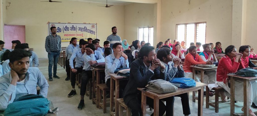 सहसवान/बदायूं : डीपी महाविद्यालय में एनएसएस के एक दिवसीय कैम्प का चतुर्थ दिवस का हुआ आयोजन । चतुर्थ दिवस का विषय स्वयंसेवकों/ स्वयंसेविकाओं को संचारी रोगों से बचाव की जानकारी देना था | कार्यक्रम में मुख्य अतिथि सहसवान के सामुदायिक स्वास्थ्य केंद्र के वरिष्ठ अधिकारी रहे ।कार्यक्रम का संचालन इतिहास के प्रवक्ता ज्ञानेन्द्र कश्यप ने किया | मुख्य अतिथि ने अपने संबोधन में कहा कि वह घर व आसपास क्षेत्रों में गंदगी व गंदे पानी को एकत्र न होने दें क्यूँकि गंदगी से उत्पन्न मच्छर के काटने से मलेरिया, डेंगू, फाइलेरिया दिमागी बुखार जैसी भयंकर बीमारियां हो जाती हैं । इनके संक्रमण से व्यक्ति की मृत्यु भी हो सकती है । इन रोगों से बचाव के लिए घर के आसपास कूड़ा व गंदा पानी एकत्र न होने दें और घरों में जालीदार रोशनदान लगवाएं व फुल बाजू की शर्ट पहनने का प्रयास करें