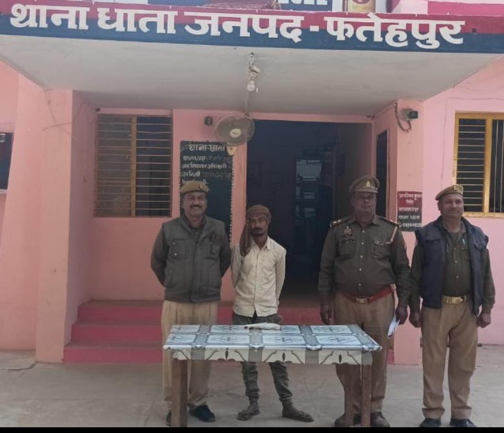 फतेहपुर जनपद के अंतर्गत धाता थाना क्षेत्र में थानाध्यक्ष प्रवीण कुमार सिंह ने वरिष्ठ उपनिरीक्षक यश करण सिंह तथा पुलिस बल के साथ मुखबिर की सूचना पर रमपुरवा मोड़ अस्पताल चौराहा के समीप आज दोपहर बाद अवैध एक देसी तमंचा व एक जिंदा कारतूस 315 बोर के साथ अनिकेस सोनकर उर्फ खल्लर पुत्र राम राज सोनकर निवासी काली माता मंदिर के पास कारीकान थाना धाता जनपद फतेहपुर को गिरफ्तार करते हुए स्थानीय थाना पहुंच आर्म्स एक्ट के तहत कार्यवाही करते हुए न्यायालय के समक्ष पेश करने हेतु भेजा। थाना पुलिस ने बताया कि गिरफ्तार अभियुक्त इसके पूर्व भी शराब अधिनियम एवं चोरी में जेल जा चुका है जो पुनः तमंचा व कारतूस के साथ गिरफ्तार हुआ है जिस पर कार्रवाई की गई है।