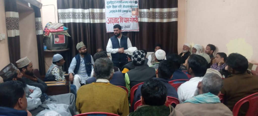 सहसवान(बदायूं)मोहल्ला नवादा स्थित पूर्व जिला पंचायत व सपा के राष्ट्रीय सचिव हाफिज इरफान के आवास पर स्वतंत्रता सेनानी आजाद भारत के पहले शिक्षा मंत्री मौलाना अबुल कलाम आजाद की पुण्यतिथि 22 फरवरी के अवसर पर मौलाना को श्रद्धांजलि अर्पित करने के उद्देश्य से एक कार्यक्रम आजाद विचार गोष्ठी का आयोजन हुआ। जिसकी अध्यक्षता अलहाज जहीर अहमद अंसारी साहब ने की। कार्यक्रम का संचालन करते हुए हाफिज इरफान ने कहा कि आजाद विचारों के बानी के यौमे वफात पर आजाद विचार गोष्टी रखने का मकसद आजाद विचारों के स्वतंत्रता को बगैर किसी बंधन के पार्टी संगठन जाति धर्म की बाधाओं को दूर करके एक स्वतंत्र सेनानी को सच्ची श्रद्धांजलि पेश करना है।