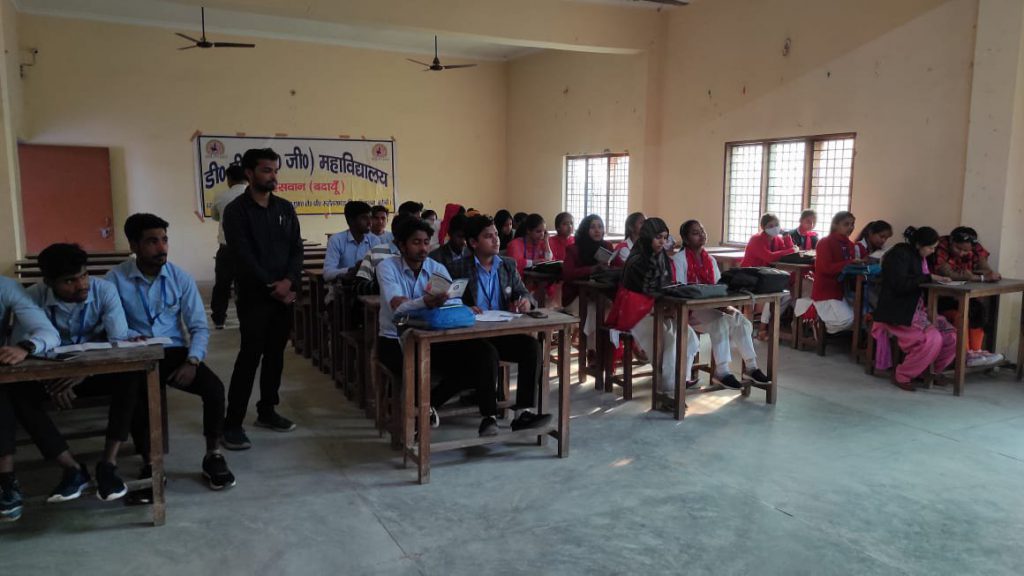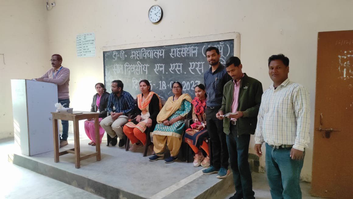 सहसवान/बदायूं : डी0 पी0 महाविद्यालय में राष्ट्रीय सेवा योजना के सात दिवसीय विशेष शिविर कौशल विकास हेतु युवा थीम पर शिविर का शुभारम्भ जोर-शोर के साथ किया गया | कार्यक्रम अधिकारी डॉ0 एम0 के0 सिंह व सहकारी कार्यक्रम प्रभारी दिव्यांश सक्सेना के निर्देशन में शिविर (कैंप) का शुभारम्भ किया गया | शिविर का प्रथम दिवस प्रस्तावना व रुपरेखा कार्यक्रम रहा | स्वयं सेवको व स्वयं सेविकाओं का परिचय व एन0 एस0 एस0 का उद्देश्य बताया गया |