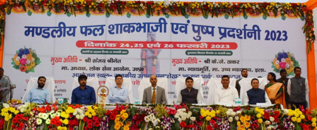प्रयागराज/उत्तर प्रदेश : राजकीय उद्यान, चन्द्रशेखर आजाद पार्क में दिनांक-24, 25 व 26 फरवरी, 2023 को आयोजित मण्डलीय फल, शाकभाजी एवं पुष्प प्रदर्शनी का उद्घाटन मुख्य अतिथि श्री संजय श्रीनेत, मा0 अध्यक्ष लोक सेवा आयोग, उ0प्र0 द्वारा फीता काटकर किया गया। मुख्य अतिथि द्वारा अवगत कराया गया कि संगम, शहीद चन्द्रशेखर आजाद एवं आजाद पार्क प्रयागराज की विशिष्ट पहचान है। फूल हमेशा खुशबू बिखेरता है एवं लोगों को खुश रहने की प्रेरणा देता है। मण्डलायुक्त श्री विजय विश्वास पंत ने बसन्त के इस मौसम में पुष्पों की इतनी सफल प्रदर्शनी के लिए आयोजकों को धन्यवाद दिया तथा वायुसेना के बैण्ड द्वारा अत्यन्त खूबसूरत संगीत रस विखेरने के लिए उनकी भूरी-भूरी प्रसंशा की तथा अगले वर्ष यह सुझाव दिया कि प्रदर्शनी के बारे में खूब प्रचार-प्रसार करते हुए प्रतिभागियों की संख्या बढ़ाई जाये।