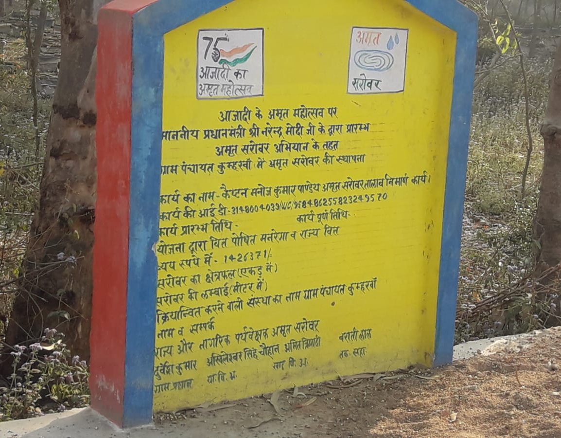 रामनगर/बाराबंकी : अमृत सरोवर के लिए सरकार जहां एक ओर करोड़ों रुपए खर्च करती है। वही कुछ प्रधान रुपए डकारने के चक्कर में सरोंवरो का निर्माण पीली ईंटों तथा घटिया सामग्री का प्रयोग कर अच्छी खासी रकम बचाने के चक्कर में लगे हैं। मामला है ग्राम पंचायत कुम्हरवा का जहां अमृत सरोवर निर्माणाधीन है यहां के प्रधान के द्वारा अमृत सरोवर निर्माण में शुद्ध पीली ईटें तथा घटिया मसाले का प्रयोग कर भारी भरकम रकम बचाने के चक्कर में लगे हुए हैं। और इसका निर्माण भी कच्छप गति से चल रहा है। यह सरोवर कैप्टन मनोज पांडे अमृत सरोवर के नाम से है। इस सरोवर का निर्माण मनरेगा व राज्य ब्यय से 1426371 रुपए में हो रहा है। जिसमें प्रधान दुर्गेश कुमार यादव तथा पंचायत सचिव अखिलेश्वर चौहान की मिलीभगत से बंदर बाटी कर सरोवर का निर्माण घटिया सामग्री प्रयोग कर किया जा रहा है। ब्लॉक के ईमानदार बी डी ओ अमित कुमार त्रिपाठी की छवि पर दाग लगाने का कार्य कर रहे हैं।ग्राम प्रधान से जानकारी करने पर बताया कि हम तो अपना काम सही तरीके से अपने हिसाब से करा रहे हैं लेकिन आप को जो करना है वह करिए।