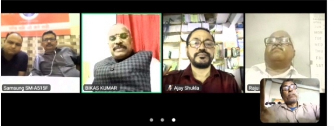 *बहुयामी समाचार ब्यूरो चीफ इन्द्र जीत वर्मा बाराबंकी……बाराबंकी । जर्नलिस्ट काउंसिल आफ इंडिया (रजि.) की राष्ट्रीय कार्यकारिणी की मासिक बैठक आज वर्चुअल मीटिंग के रूप में संपन्न हुई। बैठक में असम के पूर्व जज एवं जर्नलिस्ट काउंसिल ऑफ इंडिया के राष्ट्रीय सलाहकार समिति के वरिष्ठ सदस्य विकास कुमार, राष्ट्रीय अध्यक्ष अनुराग सक्सेना राष्ट्रीय संयोजक डॉ आर सी श्रीवास्तव राष्ट्रीय सलाहकार समिति के वरिष्ठ सदस्य राजू चारण, अजय शुक्ला समेत लगभग सभी राष्ट्रीय पदाधिकारियों ने हिस्सा लिया। चूंकि यह वर्चुअल मीटिंग सामान्य मासिक मीटिंग थी अतः संगठन के विस्तार एवं मौजूदा ढांचे में सुधार एवं परिवर्तन को लेकर थी।इस अवसर पर सभी राष्ट्रीय पदाधिकारियों ने अपने विचार व्यक्त किए संस्था के अध्यक्ष अनुराग सक्सेना ने कहा कि संस्था के वरिष्ठ पदाधिकारियों को और अधिक जिम्मेदारी लेने की आवश्यकता है तथा निचले स्तर के संगठनों को और अधिक संगठित और जुझारू होने की आवश्यकता है तभी हम पत्रकारों के हित की लड़ाई बेहतर तरीके से लड़ सकेंगे। संस्था के राष्ट्रीय संयोजक डॉ आर सी श्रीवास्तव ने अपने विचार व्यक्त करते हुए कहा कि संगठन के हर सिपाही को संगठन के हित के लिए और पत्रकारों के हित के लिए सदैव मुस्तैद रहना चाहिए और यह प्रयास करना चाहिए कि किसी भी प्रकार से पत्रकारों का शोषण न होने पाए, रिटायर्ड जज एवं संस्था के वरिष्ठ पदाधिकारी विकास कुमार ने कहा कि जहां एक तरफ पत्रकारों के हितों की रक्षा करने की आवश्यकता है वहीं दूसरी तरफ पत्रकारों के लिए संघर्ष करने और उनके हक को सुरक्षित करने की आवश्यकता है ताकि पत्रकार निर्भीक होकर अपने कार्य को अंजाम दे सके। संस्था के वरिष्ठ पदाधिकारी राजू चारण ने अपने विचार व्यक्त करते हुए कहा कि पत्रकारों को आपसी द्वेष छोड़कर केवल पत्रकार हितों की बात करनी चाहिए और सदैव प्रयास करना चाहिए कि हम किस प्रकार से पत्रकारों के हित में और बेहतर कर सकते हैं। वरिष्ठ पदाधिकारी अजय शुक्ला ने कहा कि पदाधिकारियों को और परिश्रम करने की आवश्यकता है तथा समाचार पत्रों के जिला संवाददाता के अतिरिक्त अन पत्रकारों को भी पहचान दिलाने और उनके हक के लिए आवाज उठाने की आवश्यकता है प्रिंट मीडिया के अतिरिक्त इलेक्ट्रॉनिक मीडिया और वेव मीडिया प्लेटफार्म के लिए भी और बेहतर तरीके से आवाज उठाने की आवश्यकता है। वरिष्ठ पदाधिकारी राघवेंद्र त्रिपाठी ने कहा कि आज पत्रकारों को प्रताड़ित किया जा रहा है और बेवजह उनके खिलाफ मुकदमे लिखे जा रहे हैं जो पत्रकारों पर उत्पीड़न है इसे कतई बर्दाश्त नहीं किया जाएगा। वरिष्ठ पदाधिकारी दानिश जमाल ने कहा कि आज हमें और हमारे पत्रकार भाइयों को आपसी भेदभाव भुलाकर जर्न