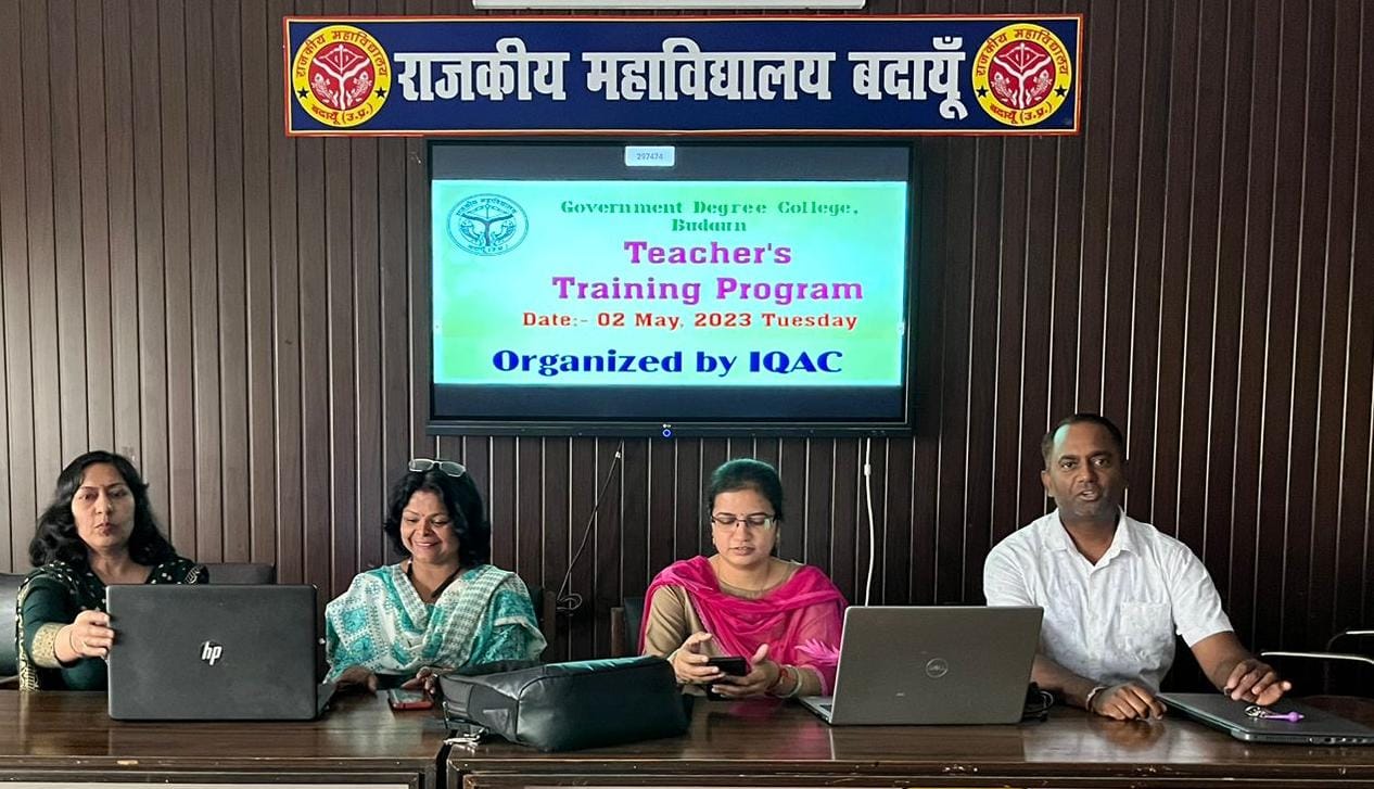 बदायूं/उत्तर प्रदेश : आवास विकास स्थित राजकीय महाविद्यालय बदायूं में स्थापित आइक्यूएसी के तत्वावधान में टीचर ट्रेनिंग प्रोग्राम का आयोजन किया गया। महाविद्यालय की वेबसाइट के सफल संचालन तथा विश्वविद्यालय और महाविद्यालय के द्वारा छात्र छात्राओं को दी जारही ऑनलाइन अधिकांश सुविधाओं का सुचारू रूप से सद्पयोग करने के लिए सभी प्राध्यापकों को प्रशिक्षित किया गया। राष्ट्रीय शिक्षा नीति 2020 के सफल क्रियान्वयन हेतु प्राध्यापकों के द्वारा ई कंटेंट तैयार करना, ऑनलाइन क्लास एवं वर्चुअल लैब की तकनीकी को विकसित कर सैद्धांतिक एवं प्रयोगात्मक कक्षाओं को संचालित करने के लिए मुख्य प्रशिक्षक डॉ सचिन कुमार राघव ने वेबसाइट के विभिन्न पहलुओं पर प्रकाश डाला और उसके संचालन के तौर-तरीकों का प्रदर्शन किया।