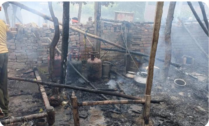 रिपोर्ट – जीत नाग बेलहरा सूरतगंज बाराबंकी : रामनगर अंतर्गत ग्राम पंचायत करौता से जहां अचानक गैस सिलेंडर फटने से कई घर जलकर खाक हो गए जिसमें रामचंद्र पुत्र सियाराम के यहां बीते दिन लड़की की शादी में आए हुए मेहमान के जेवरात लगभग 50,000 लगदी रुपया 35000 शादी में देने के लिए कपड़े लगभग 50,00 बर्तन और खाने के लिए राशन सब जलकर खाक हो गया वही रामचंद्र की पड़ोसी कामता प्रसाद पुत्र अशर्फीलाल रामसागर पुत्र अशर्फीलाल दोनों भाइयों का घर आग की चपेट में आ गया जिससे घर में लड़की की शादी का सारा दान दहेज और नगदी रुपया जलकर खाक गया प्राप्त जानकारी के अनुसार लग्न में देने के लिए कपड़ा लगभग 30,000 बर्तन 3500 जेवरात 20000 नगद रुपया 60,000 और राशन जलकर सब खाक हो गया वही लोगों ने फायर ब्रिगेड को आग बुझाने के लिए सूचना दी परंतु घंटों बाद फायर ब्रिगेड मशीन पहुंची जबकि चौकी लालपुर करौता को सूचना मिलते ही चौकी इंचार्ज राहुल शर्मा अपनी पूरी टीम को ले जाकर के आग बुझाने एवं वृद्ध बच्चों एवं महिलाओं को बचाने के कार्य में जुट गए जिससे कोई प्रकार की जान माल की घटना का कारण नहीं हुआ।