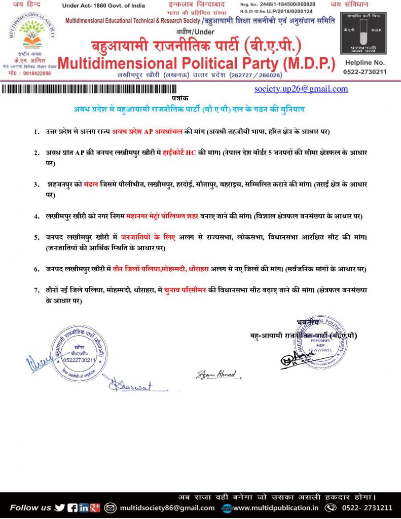 - उत्तर प्रदेश से अलग राज्य अवध प्रदेश AP अवधांचल की मांग (अवधी तहज़ीबी भाषा, हरित क्षेत्र के आधार पर)
