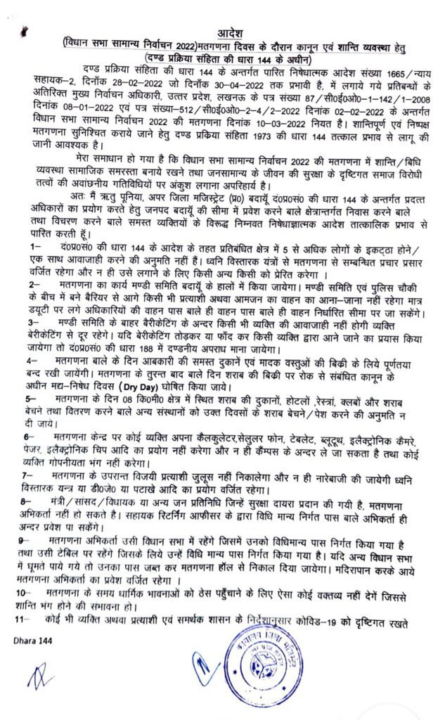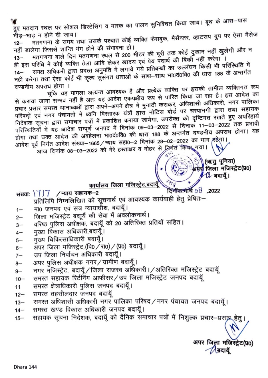 दंड प्रक्रिया संहिता की धारा 144 के अधीन ब्यूरो रिपोर्ट : आलोक मालपाणी बदायूं Post Views: 541 Share this: Click to share on Facebook (Opens in new window) Facebook Click to share on X (Opens in new window) X Click to share on LinkedIn (Opens in new window) LinkedIn Click to share on X (Opens in new window) X Click to share on WhatsApp (Opens in new window) WhatsApp Click to print (Opens in new window) Print Post navigation हथियार के तौर पर प्रयोग किए जा सकने वाले चुनाव चिन्ह पर प्रतिबंध लगवाने बहुआयामी राजनीतिक पार्टी 31 मार्च तक अवश्य करा लें ईकेवाईसी