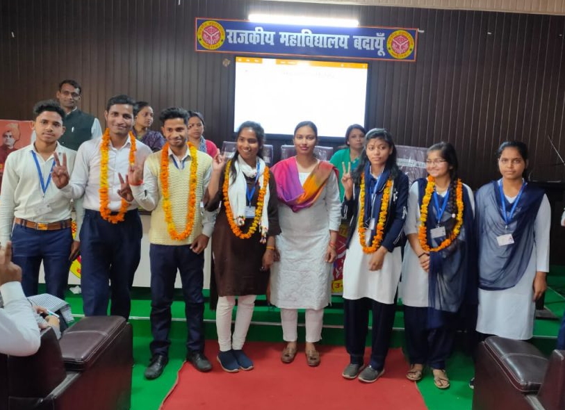 आवास विकास स्थित राजकीय महाविद्यालय बदायूं में छात्र छात्राओं के सर्वसम्मति से वनस्पति विज्ञान परिषद का गठन किया गया । विभाग प्रभारी डॉक्टर सरिता यादव के निर्देशन में निर्वाचन अधिकारी डॉ राकेश कुमार जायसवाल, डॉ संजय कुमार एवं डॉ ज्योति बिश्नोई ने छात्र छात्राओं के मध्य मतैक्य स्थापित कर पदाधिकारियों को निर्वाचित घोषित किया । अध्यक्ष पद पर बीएससी तृतीय वर्ष की छात्रा कुमारी सुंदरम चुनी गई। उपाध्यक्ष पद पर बीएससी तृतीय वर्ष की छात्रा रूपम एवं बीएससी द्वितीय वर्ष की छात्रा प्रियांशी निर्वाचित घोषित हुई। सचिव पद पर बीएससी प्रथम वर्ष के पारस यादव चुने गए वहीं संयुक्त सचिव के पद पर बीएससी प्रथम वर्ष की दृष्टि सिंह का चयन किया गया। कार्यकारिणी सदस्य के रूप में सूर्य प्रताप बर्मा, प्रशांत भारद्वाज,मोहम्मद फैज,शिवलेश यादव,बॉबी गुप्ता एवं भगवान देवी को मनोनीत किया गया। विभागाध्यक्ष डॉ सरिता यादव ने सभी पदाधिकारियों को शुभकामनाएं प्रदान करते हुए प्रमाण पत्र प्रदान किया। डॉ सरिता यादव ने कहा कि विजेता पदाधिकारी वनस्पति विज्ञान विभाग से संबंधित गतिविधियों में सक्रियता से भाग लेते हुए महाविद्यालय के शैक्षिक वातावरण को बनाने में सहयोग करेंगे।