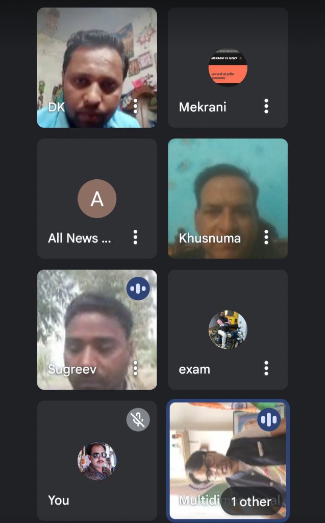 श्री केएम आमिष राष्ट्रीय अध्यक्ष BAP द्वारा गूगल मीट के जरिए ऑनलाइन मीटिंग ऑनलाइन मीटिंग का आयोजन किया गया जिसमे बहुआयामी समाचार पत्रिकारिता* के क्षेत्र से जुड़े हुए समस्त प्रदेश मीडिया प्रमुख व जनपद ब्यूरो प्रमुख व पत्रकार बंधु मौजूद रहे बहुआयामी समाचार के माध्यम से पत्रकारिता के क्षेत्र में हो रही परेशानियों व शिकायतों के संबंध में श्री राष्ट्रीय अध्यक्ष द्वारा सुझाव दिया गया