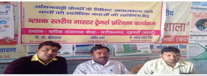 दहगवां आंगनवाड़ी कार्यकत्रियों का एक दिवसीय प्रशिक्षण का हुआ समापन दहगवां बीआरसी केन्द्र जरीफनगर पर बुधवार को समेकित शिक्षा के अंतर्गत दिव्यांग बच्चों को चिन्हित कर उनके पोषण एवं शिक्षण के लिए आंगनवाड़ी कार्यकत्रियों का एक दिवसीय प्रशिक्षण ए आर पी संजीव सक्सेना के नेतृत्व में संपन्न हुआ ।इस अवसर पर समेकित शिक्षा के विषय शिक्षक जियालाल ,राजेश कुमार व विनोद कुमार ने दिव्यांगता की पहचान एवं उपचार के उपाय विस्तार से बताये।एआरपी मोहम्मद मोहसिन, रमेश चंद्र तथा जीवन बाबू ने नई शिक्षा नीति की चर्चा करते हुए कार्य को समझाया। पूर्व प्राथमिक कक्षाओं के संचालन और बालवाटिका के सफल क्रियान्वयन के महत्व को बताते हुए प्रशिक्षण का समापन संजीव सक्सेना ने किया।इस अवसर पर राकेश कुमार सहित विकास क्षेत्र कीभी आंगनवाड़ी कार्यकत्रियों उपस्थित रहीं।