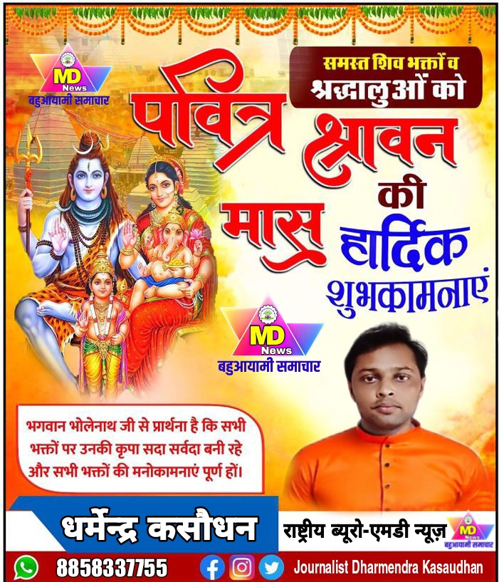 भगवान भोलेनाथ की आराधना-उपासना को समर्पित, पावन मास श्रावण आज से प्रारंभ हो रहा है। अटूट श्रद्धा और समर्पण की प्रतीक, कांवड़-यात्रा के पुण्यभागी,बहुआयामी समाचार के सभी पाठकों ,दर्शकों, एवं समस्त देशवासियों का स्वागत-अभिनंदन एवं ढेरों शुभकामनाएं।। ।।ॐ नमः शिवाय।।