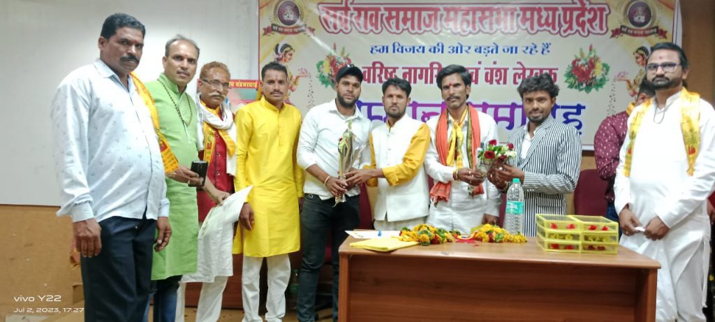 भोपाल ।सरदार वल्लभ भाई पटेल पॉलिटेक्निक कॉलेज में सामाजिक संगठन सर्व राव समाज महासभा द्वारा राज्य स्तरीय सम्मान समारोह का आयोजन संपन्न किया गया जिसमे समाज के प्रमुख वरिष्ठों कों वरिष्ठ नागरिक सम्मान, वंश लेखकों कों वंश लेखक सम्मान व छात्र / छात्राओं कों उत्कृष्ठ शिक्षा के लिऐ विशेष प्रतिभा सम्मान एवं उत्कृष्ट कार्य करने वाले नागरिको कों उत्कृष्ट समाज सेवक सम्मान एवं समाज कों अंतर राष्ट्रीय स्तर पर कवि सम्मेलनों के माध्यम से समाज कों गौरान्वित करने हेतु प्रदेश उपाध्यक्ष कवि मिथुन मिथलेश राव कों विशेष प्रतिभा सम्मान से सम्मानित किया गया।