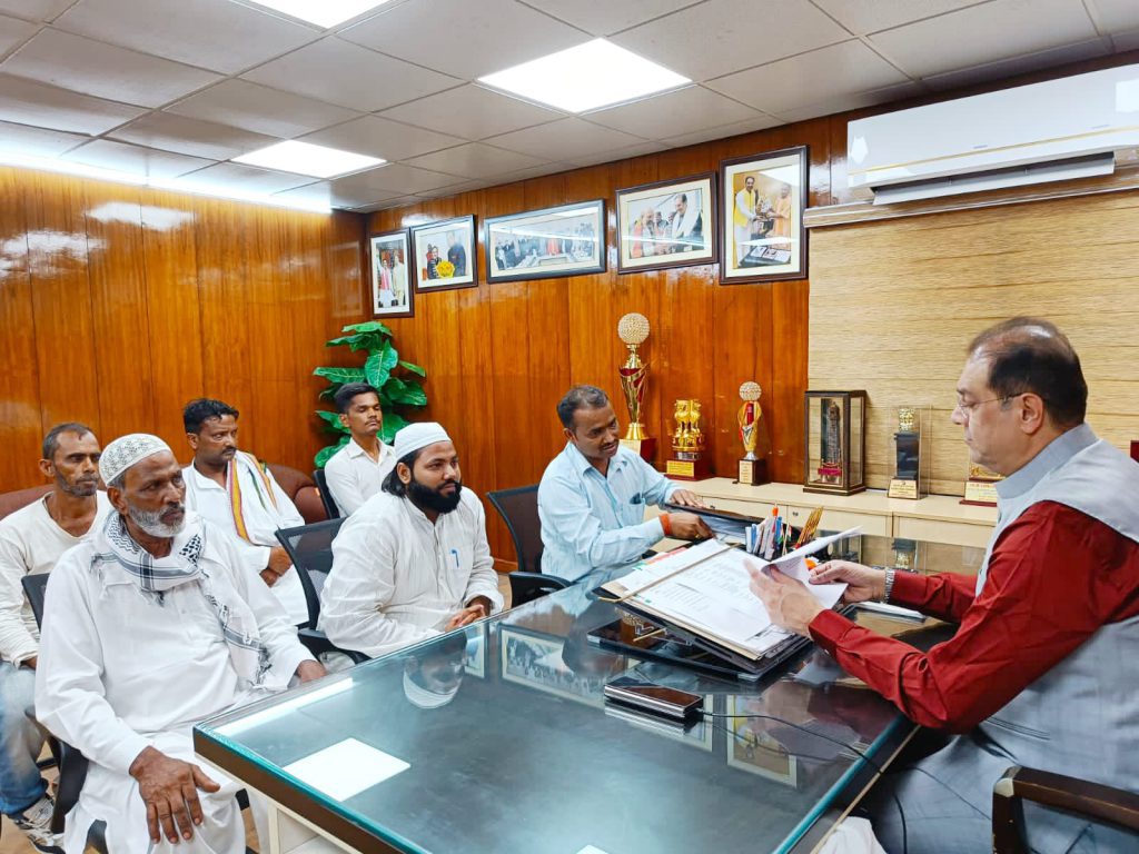 बिजनौर– ग्राम सलेमपुर विधान सभा कांठ ज़िला मुरादाबाद के रहने वाले फरमान फ़ैज़ी जी ने अपने गुरु नोजवानो के दिल की धड़कन गरीबों के मसीहा राज्य हज समिति के यशस्वी अध्यक्ष! एवं सदस्य विधान परिषद मंत्री श्री मोहसिन रज़ा जी से लखनऊ पहुंचकर कर राज्य हज समिति के कार्यालय पर एक शानदार और खास मुलाक़ात की. श्री प्रतिनिधि फरमान फ़ैज़ी व उन के साथियों ने अपने गुरु मंत्री श्री मोहसिन रज़ा जी को पटका व मिठाई खिलाकर ईद की मुबारक बाद पेश की व अपने नेता का आशीर्वाद प्राप्त किया राज्य हज समिति के कार्यालय पर मंत्री श्री मोहसिन रज़ा जी के प्रतिनिधि श्री फरमान फ़ैज़ी जी व उन सभी साथियों को अपने गुरु से मिलकर बे पनाह प्यार व खुशी मिली इस मुलाक़ात में 80 मिनट तक अपने यहाँ के विकास को लेकर खूब बात चीत की माननीय मंत्री श्री मोहसिन रज़ा जी ने हर परेशानी को बहुत गोर से सुना एवं सुनकर अधिकारों को निर्देश जारी किए
