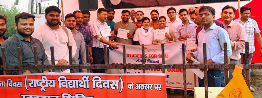 बदायूं/उत्तर प्रदेश : अखिल भारतीय विद्यार्थी परिषद की स्थापना दिवस के अंतर्गत सप्ताह व्यापी कार्यक्रम के बदायूं नगर ईकाई द्वारा नेहरू मेमोरियल शिव नारायण दास स्नातकोत्तर महाविद्यालय बदायूं में लगातार दूसरे दिन भी विद्यार्थी एवं शिक्षकों ने रक्तदान अभियान में हिस्सा लेकर रक्तदान किया। प्राचार्य डा० कमलेश कुमार सिंह ने रक्तदान शिविर का शुभारंभ किया और कहा कि यह एक सत्कार्य है जिसमे हम किसी का जीवन बचा सकते हैं। उन्होंने कहा कि संसार में इससे बड़ा कोई पुण्य कार्य नहीं है।