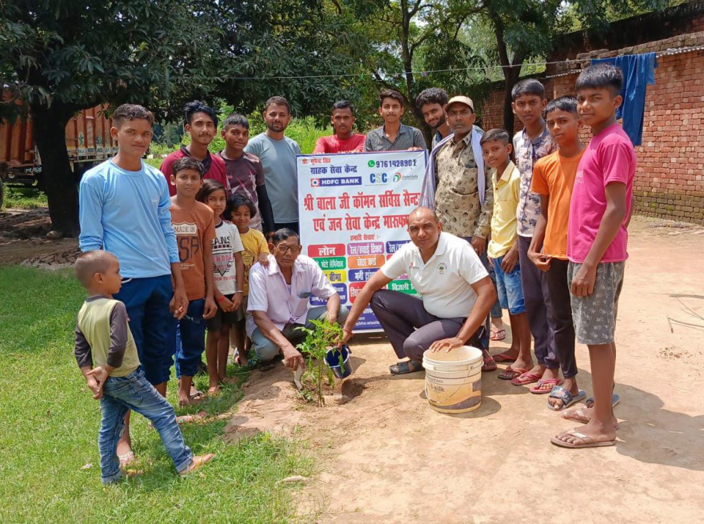 सीएससी संचालक भूपेंद्र सिंह भारती ने पौधरोपण कर ग्रामीणों को मिठाई वितरित की।