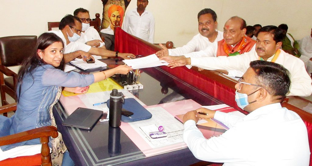 कड़ी सुरक्षा व्यवस्था के बीच प्रातः 11 बजे से अपरान्ह तीन बजे तक नामांकन पत्र दाखिल हुए। 21 मार्च नाम निर्देशन हेतु अंतिम दिनांक निश्चित थी। 22 मार्च को नाम निर्देशन पत्रों की संवीक्षा होगी तथा 24 मार्च को नाम वापसी की तिथि तय है। 09 अपै्रल को पूर्वाह्न 8ः00 बजे से अपराह 4ः00 बजे तक मतदान होगा। 12 अप्रैल को मतगणना होगी। नामांकन के अंतिम समय में आवाज लगाई गई कि नामांकन के लिए कोई उम्मीदवार बाकी हो तो नामांकन कक्ष में तीन बजे तक अपना नामांकन पत्र दाखिल कर सकता है। इस अवसर पर अपर जिलाधिकारी वित्त एवं राजस्व संतोष कुमार वैश्य एवं अतिरिक्त मजिस्ट्रेट प्रवर्धन शर्मा मौजूद रहे।