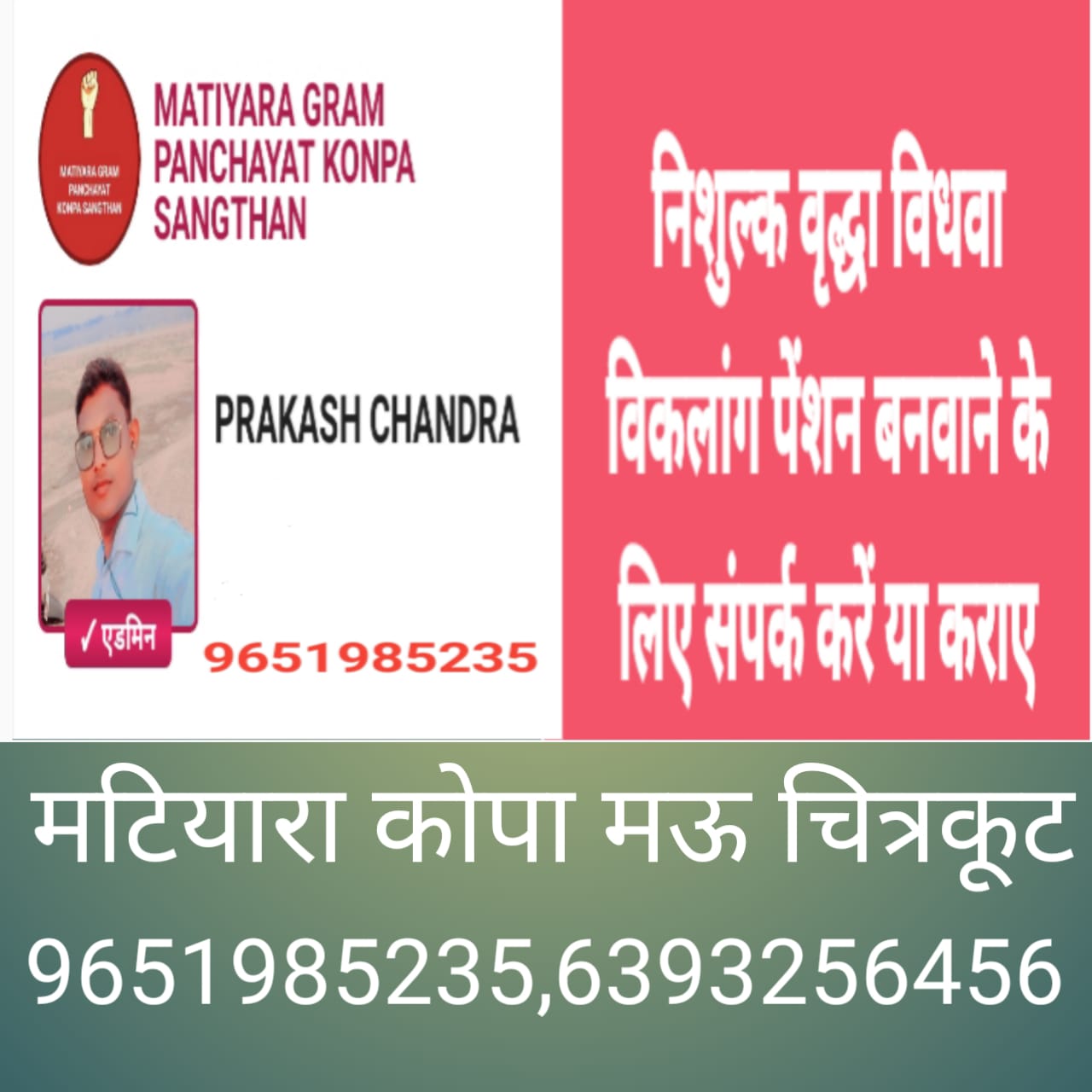 जनपद चित्रकूट मऊ क्षेत्र के अंतर्गत मटियारा का पुरवा के सी एस सी संचालक प्रकाश चंद्र मऊ तहसील गेट के सी एस सी केंद्र द्वारा लोगों को दी जा रही बेहतर आनलाइन सुविधा। योजनाओं का लाभ दिलाना एंव पात्रो को विभिन्न प्रकार के सरकारी योजनाओं के आवेदन करवाना और लाभ दिलाना प्राथमिकता है ।संचालक ने बताया की सी एस सी केंद्र द्वारा विभिन्न प्रकार के प्रमाणपत्र जैसे किसान सम्मान निधि ,विकलांग पेंशन, वृध्दा पेंशन ,विधवा पेंशन, आय प्रमाण पत्र, जाति प्रमाण पत्र, निवास प्रमाण पत्र, पैन कार्ड, शादी अनुदान, छात्रवृत्ति आदि प्रकार के आनलाइन सेवाये दी जा रही हैं। सी एस सी संचालक प्रकाश चंद्र के अनुसार सरकार की सभी सुविधाएं और योजनाओं को लोगो तक पहुचाना एंव.सी एस सी कें माध्यम से बेहतर आनलाइन सुविधा दिलाना है ।किसी प्रकार का आनलाइन आवेदन उचित मूल्य पर किये जाते हैं।
