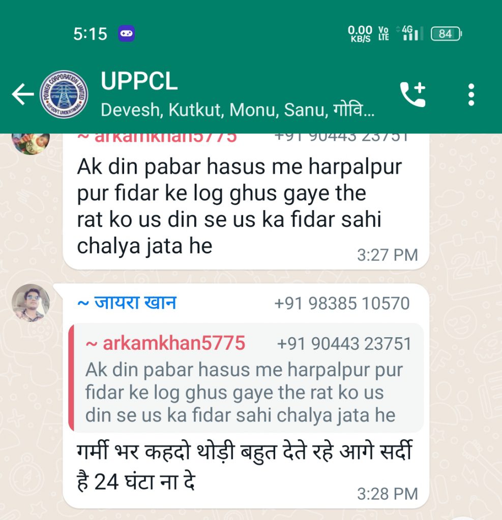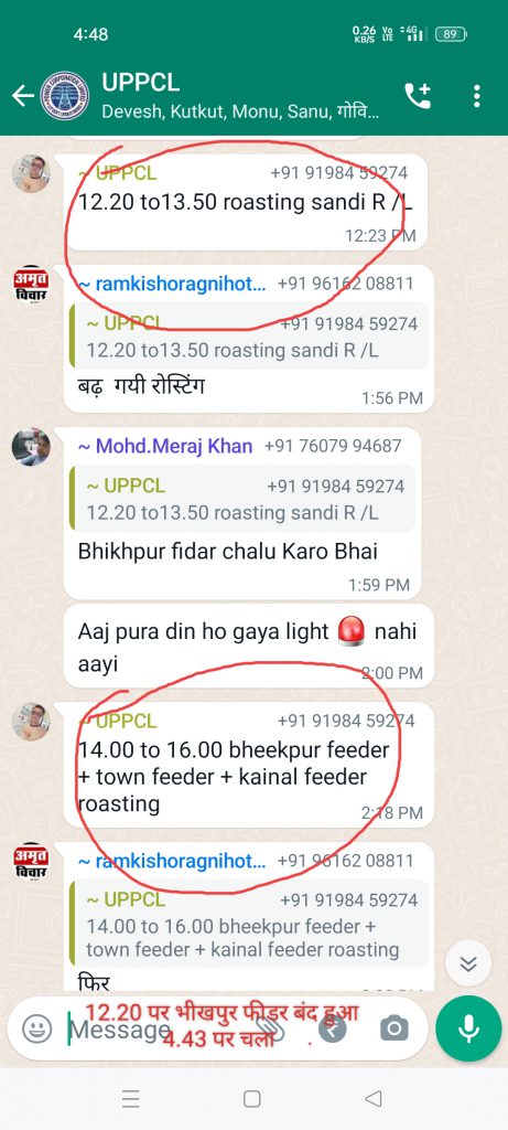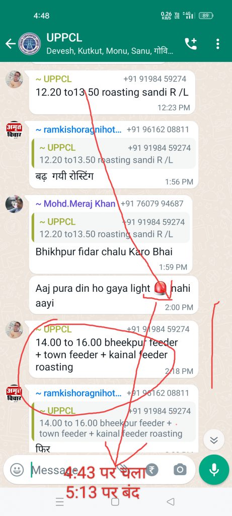 गौर तलब हो कि विद्युत कर्मचारी वा अधिकारी शासन की मंशा को ठेंगा दिखाने का काम कर रहे है।क्योंकि जैसे ही गर्मी का पारा चढ़ना शुरू हुआ कि विद्युत विभाग को जुखाम बुखार आना शुरू हो गया क्योंकि इस समय चौबीस घंटे में बमुश्किल 5 घंटे सप्लाई मिलना नसीब नही हो रही जिससे आम जनमानस को जीना मुस्किल पड़ रहा है वही ठंडे पानी पीने को लोग तरस रहे है । अगर पावर हाउस को पता करने की कोशिश भी की जाय तो या तो विभाग का फोन नही उठेगा या घंटो विजी बताता रहेगा वही व्हाट्सएप ग्रुप पर अगर जानकारी लेना चाहो तो विद्युत विभाग के कर्मचारी ओनली एडमिन ऑप्शन लगा देते हैं जिससे आम जनमानस ना तो मैसेज कर पाएगा और ना ही विद्युत की कोई जानकारी प्राप्त कर पाएगा