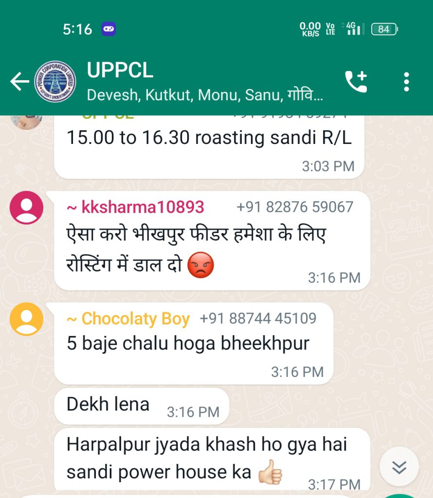 यहा पर अंधा पीसे कुत्ता खाए की कहावत चरितार्थ हो रही है । इतना जरूर है कि किन्ही कारणों वश यदि उपभोक्ता बिल जमा करने में थोड़ा सा लेट हो जाए तो साहब आफिस के बैठे बैठे लाइन मैन के द्वारा उसका कनेक्शन जरूर कटवा देंगे इसमें कोई लापरवाही नही बरतेंगे l वही सांडी पावर हाउस में ओवरलोड की समस्या की बात करें तो नियम बनाया गया दो-दो घंटा सभी फीडर चलेंगे लेकिन ऐसा नहीं हो रहा है कहीं तो 4 घंटे लगातार रोस्टिंग होती है कहीं तो लगातार लाइट दी जाती है कहीं तो वस आई गई यही सिलसिला जारी रहता है l इसका जिम्मेदार कौन