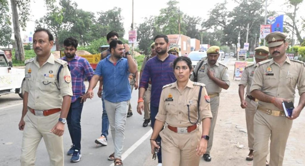 औरैया। बीती शाम पुलिस अधीक्षक चारू निगम ने जनपद में कानून व्यवस्था को सुदृढ बनाये रखने व आगामी त्यौहारों के दृष्टिगत भारी पुलिस बल के साथ थाना अजीतमल क्षेत्र में पड़ने वाले मुख्य चौराहों, बाजार तथा भीड़भाड़ वाले स्थानों पर पैदल गस्त करते हुए लोगों से संवाद कर उनकी समस्याओं को सुना तथा सुरक्षा का एहसास दिलाया ।एसपी द्वारा संबन्धित को कानून व्यवस्था/आगामी त्यौहारों को सकुशल सम्पन्न कराये जाने के संबन्ध में आवश्यक दिशा निर्देश दिए गए। पैदल गस्त के दौरान संदिग्ध व्यक्ति/वाहनों की चेंकिंग की गयी । इस दौरान अपर पुलिस अधीक्षक सहित अन्य अधिकारी/कर्म0गण मौके पर उपस्थित रहें ।