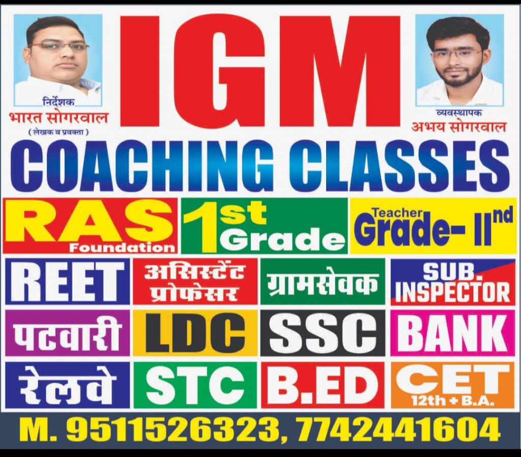 डायरेक्ट रामवीर जघीना ने बताया की कोचिंग क्लास में युवाओं को UPSC, RPSC की एग्जाम के साथ साथ पुलिस, ssc, पतवार, CET, ओर etc center और स्टेट लेवल की तैयारी कराए जा रही हैं!