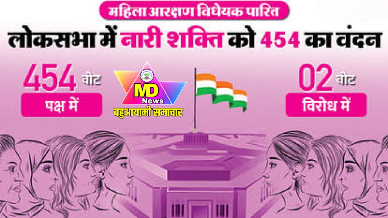 नई दिल्ली । महिला आरक्षण बिल (नारी शक्ति वंदन विधेयक) बुधवार को लंबी चर्चा के बाद तो-तिहाई बहुमत से लोकसभा (Women’s Reservation Bill Pass in Loksabha) से पास हो गया। बिल (Women’s Reservation Bill)के समर्थन में 454 और विरोध में 2 वोट पड़े. लोकसभा स्पीकर ओम बिरला (Loksabha Speaker Om Birla) ने पर्ची से वोटिंग कराई। ऑल इंडिया मजलिस-ए-इत्तेहादुल मुस्लिमीन (AIMIM) के हैदराबाद से सांसद असदुद्दीन ओवैसी और औरंगाबाद से सांसद इम्तियाज जलील ने महिला आरक्षण बिल के विरोध में वोट किया।गुरुवार को इस बिल को राज्यसभा में पेश किया जाएगा। वहां से पास होने के बाद इसे राष्ट्रपति द्रौपदी मुर्मू के साइन के लिए भेजा जाएगा। राष्ट्रपति की स्वीकृति मिलने के बाद यह कानून बन जाएगा।महिला आरक्षण बिल नई संसद के लोकसभा में पास हुआ पहला बिल भी है।महिला आरक्षण बिल के मुताबिक, लोकसभा और राज्यों की विधानसभाओं में महिलाओं के लिए 33% रिजर्वेशन लागू किया जाएगा। लोकसभा की 543 सीटों में से 181 महिलाओं के लिए आरक्षित होंगी।ये रिजर्वेशन 15 साल तक रहेगा।इसके बाद संसद चाहे तो इसकी अवधि बढ़ा सकती है। यह आरक्षण सीधे चुने जाने वाले जनप्रतिनिधियों के लिए लागू होगा। यानी यह राज्यसभा और राज्यों की विधान परिषदों पर लागू नहीं होगा।
