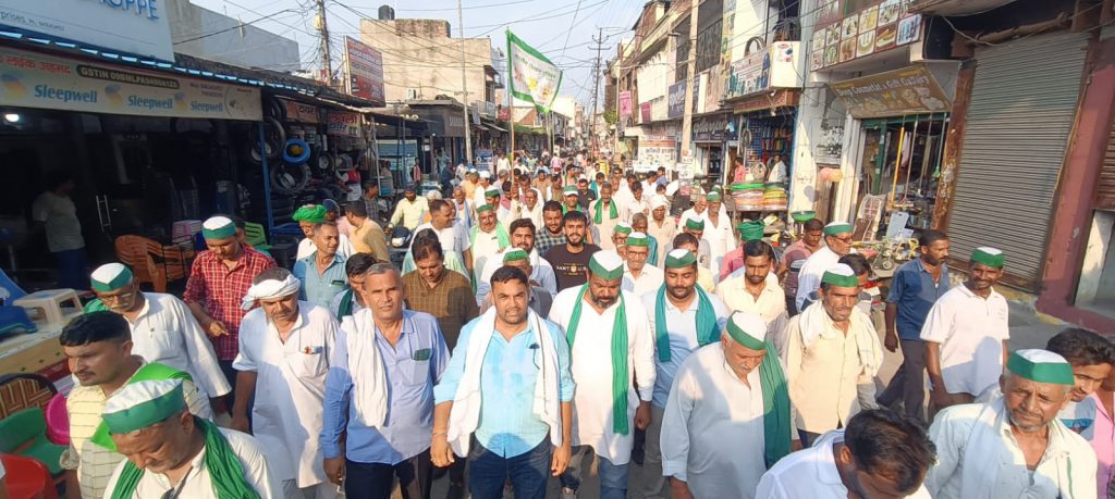 बिजली घर पर भारतीय किसान यूनियन का चौधरी गजेंद्र सिंह टिकैत के नेतृत्व में 13वे दिन भी धरना जारी रहा धरने पर मीटिंग के बाद विद्युत निगम के खिलाफ पैदल मार्च निकाला गया पैदल मार्च में बड़ी संख्या में किसानों ने मार्च में हिस्सा लिया और बिजली विभाग के खिलाफ जमकर नारेबाजी की विद्युत निगम चोर है के नारों से पूरा शहर गूंज गया शहर के लोगों ने भी किसानों के साथ मिलकर नारेबाजी की बढ़े हुए बिल चेकिंग के नाम पर उत्पीड़न ओवरलोड ट्रांसफार्मर जर्जर लाइनों और किसानों पर फर्जी मुकदमो से क्षेत्र के सब लोग परेशान हैं किसानों के पैदल मार्च की चर्चा सारे क्षेत्र में हो रही है किसानों का बड़ा हुजूम बिजली घर पर लगना शुरू हो गया है चौधरी गजेंद्र सिंह टिकैत ने चेतावनी देते हुए कहा जब तक किसानों की बिजली से संबंधित समस्याओं का समाधान नहीं होगा संघर्ष जारी रहेगा यह पैदल मार्च बिजली घर पर आंदोलन के चलते प्रतिदिन निकल जाएगा उन्होंने कहा किसानों की लड़ाई आखिरी सांस तक लड़ेंगेकिसानों एवं मजदूरों की बिजली की समस्याओं का समाधान तक संघर्ष जारी रहेगा पैदल मार्च में हिस्सा लेने वाले मलखान सिंह गुर्जर मनवीर सिंह हरिओम सिंह यादव महेश यादव अभिषेक कुमार शक्ति सिंह वीर सिंह पृथ्वी सिंह चंद्रपाल सिंह प्रधान अंकित अहलावत आदि बहुत बड़ी संख्या में किसानों ने पैदल मार्च में हिस्सा लिया